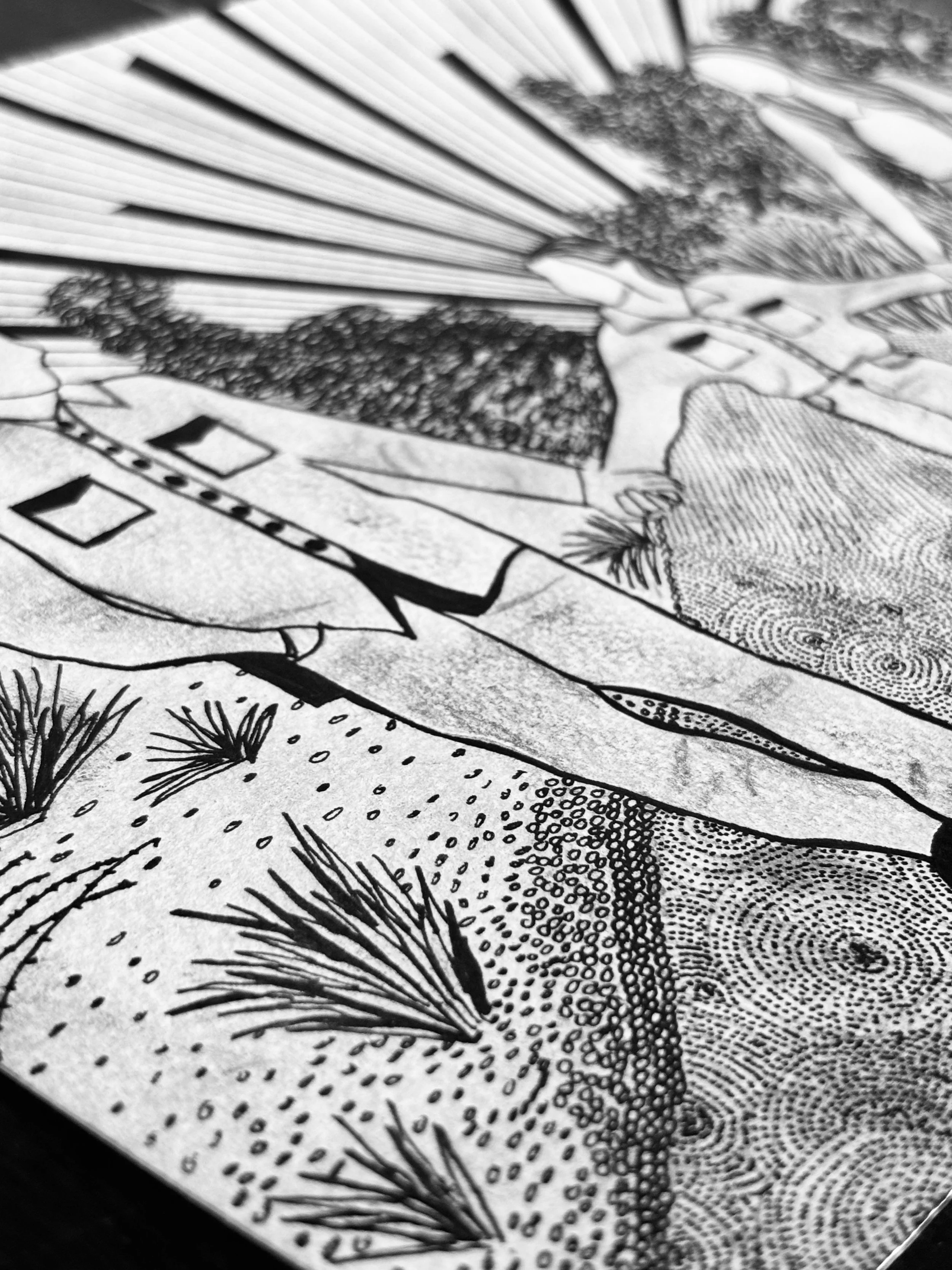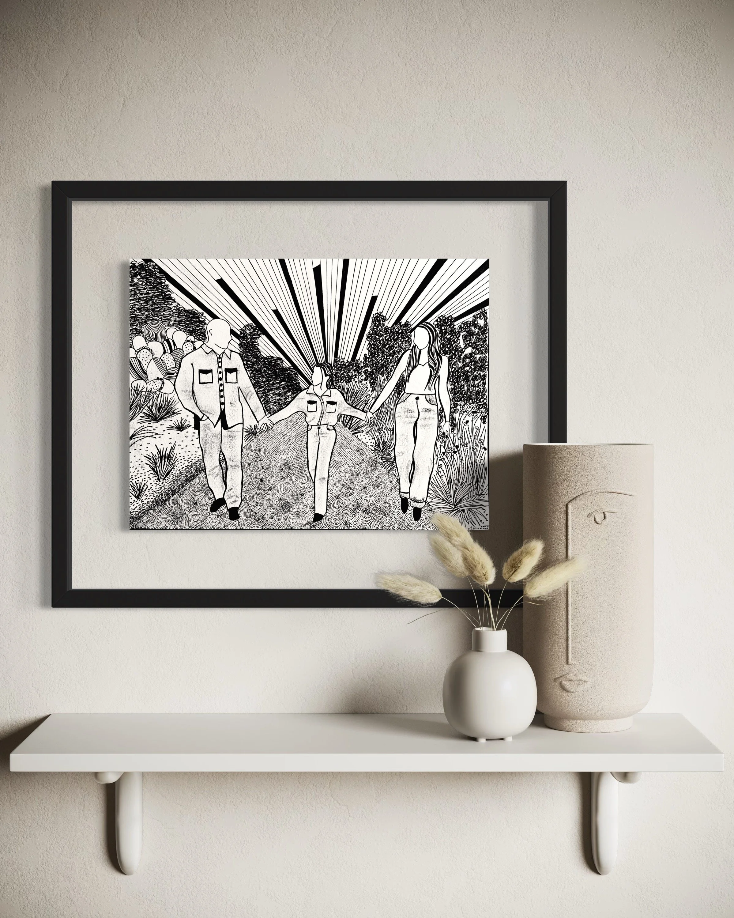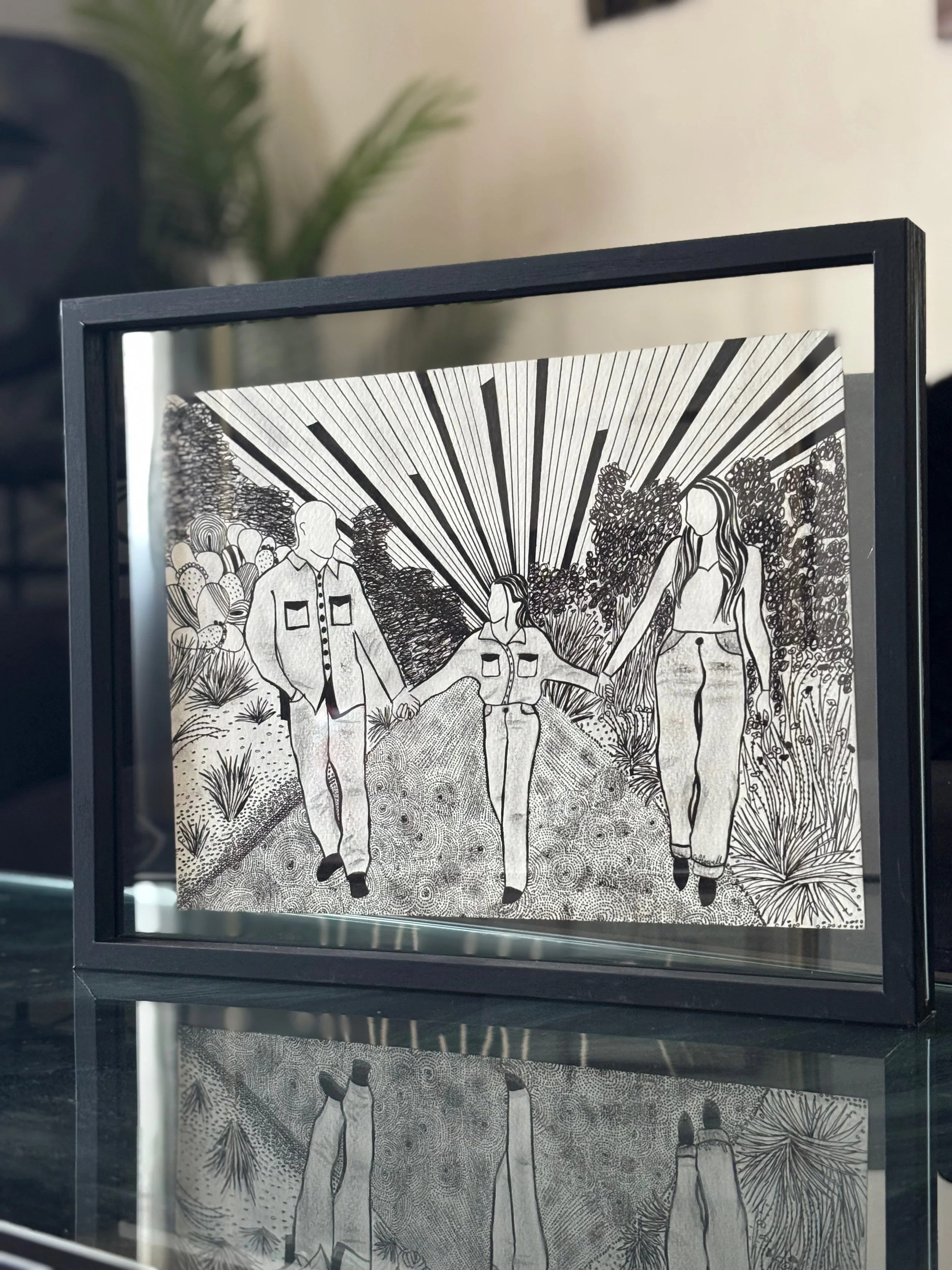 Size: 9”W x 11”H (Drawn to fit in 11”W x 14”H frame and mat)
